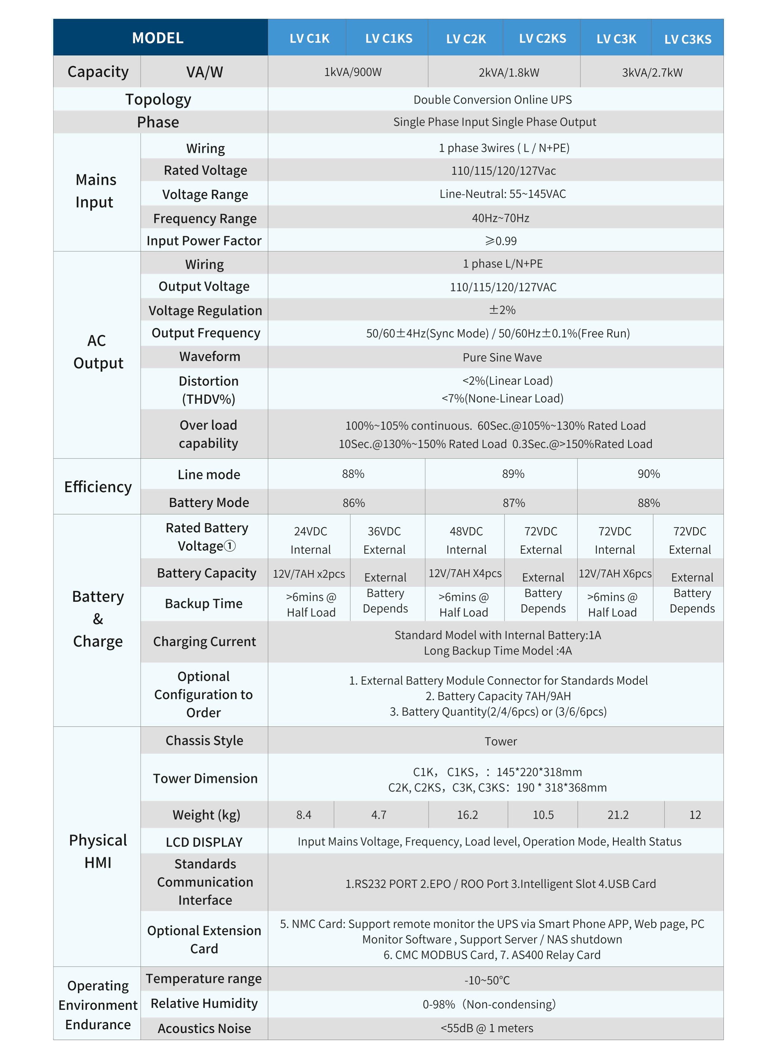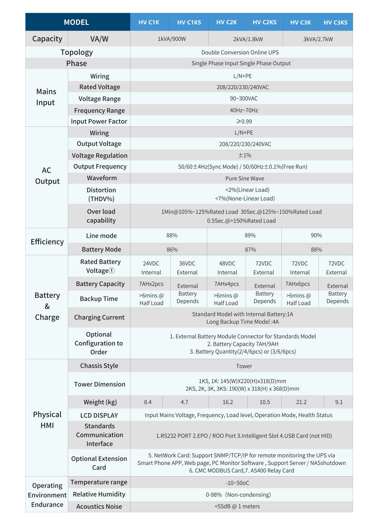 - Communications:RS232(standard), USB / MODBUS / RS485 / SNMP / AS400 card (optional)