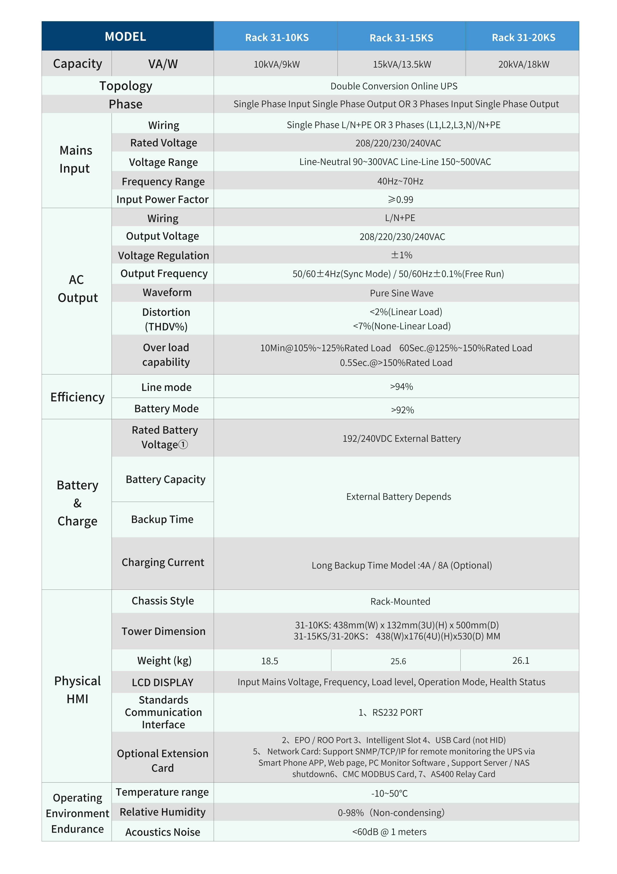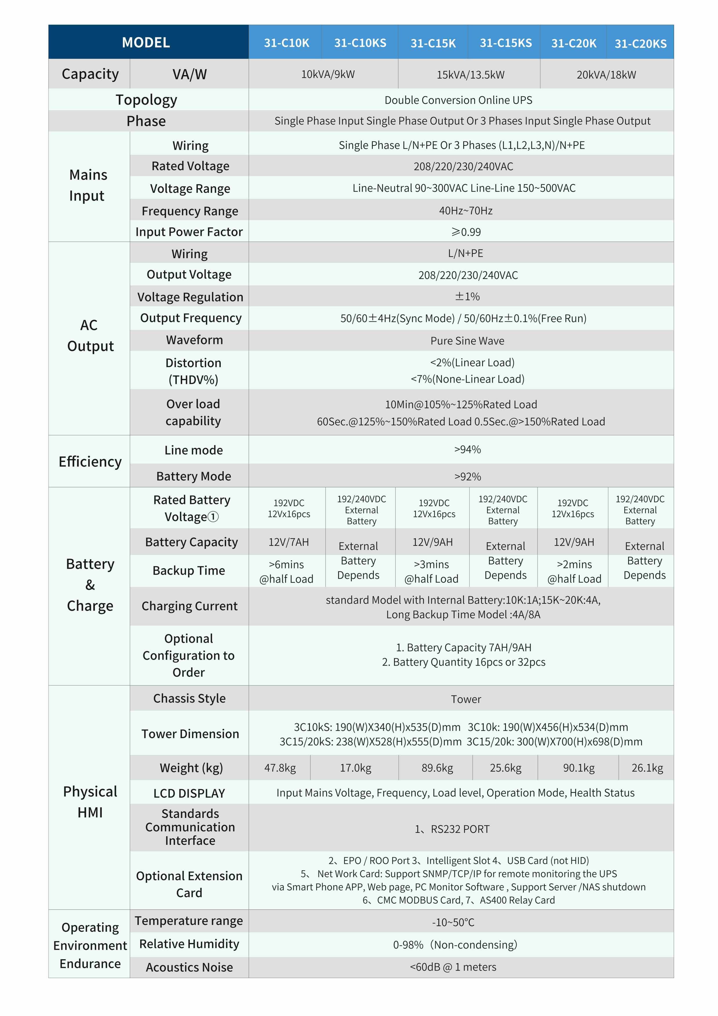 - Communications:RS232(standard), USB / MODBUS / RS485 / SNMP / AS400 card (optional)
