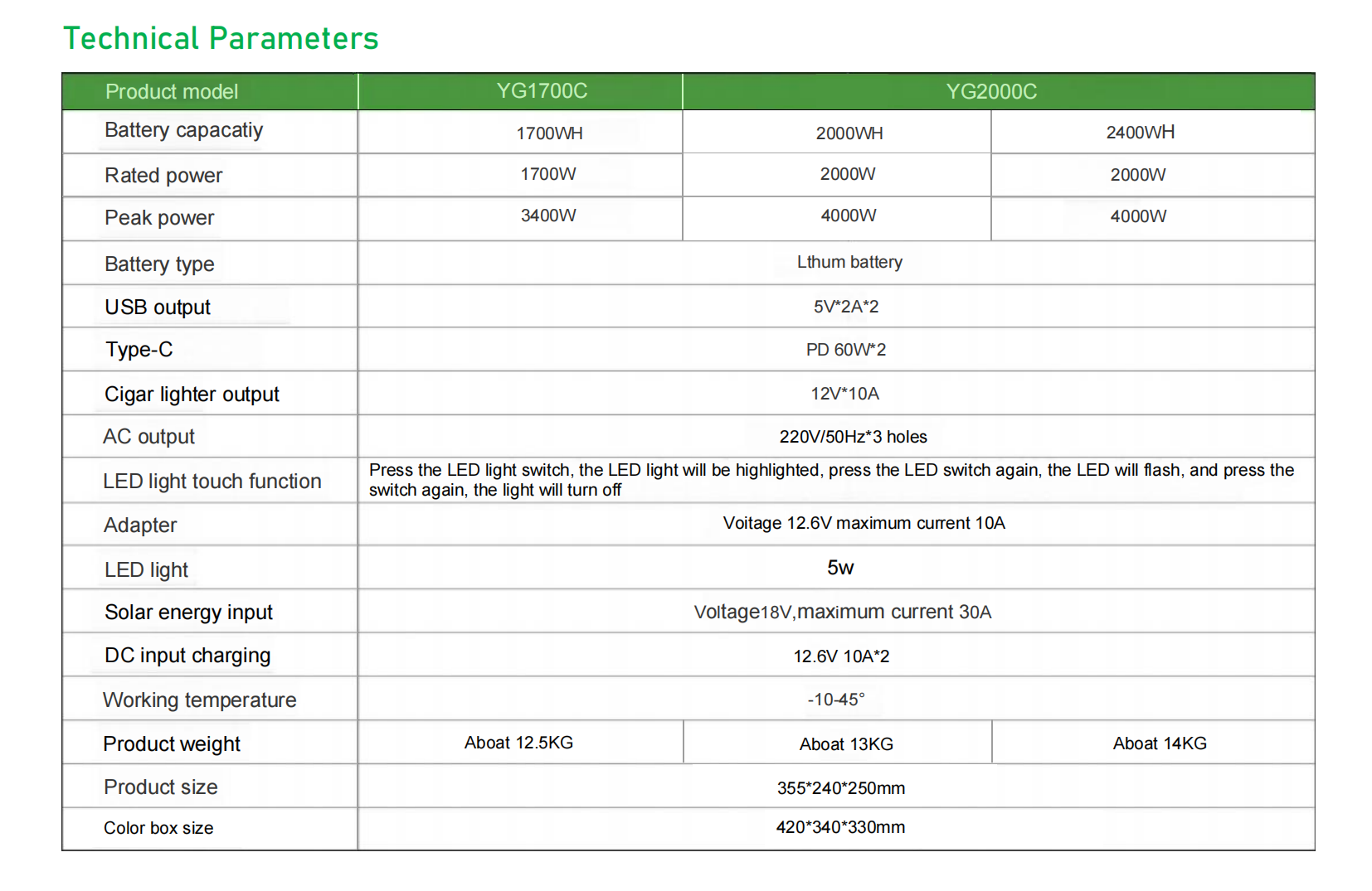 - Output: AC 110V / 220V + DC 12V + USB 5V+Type-C