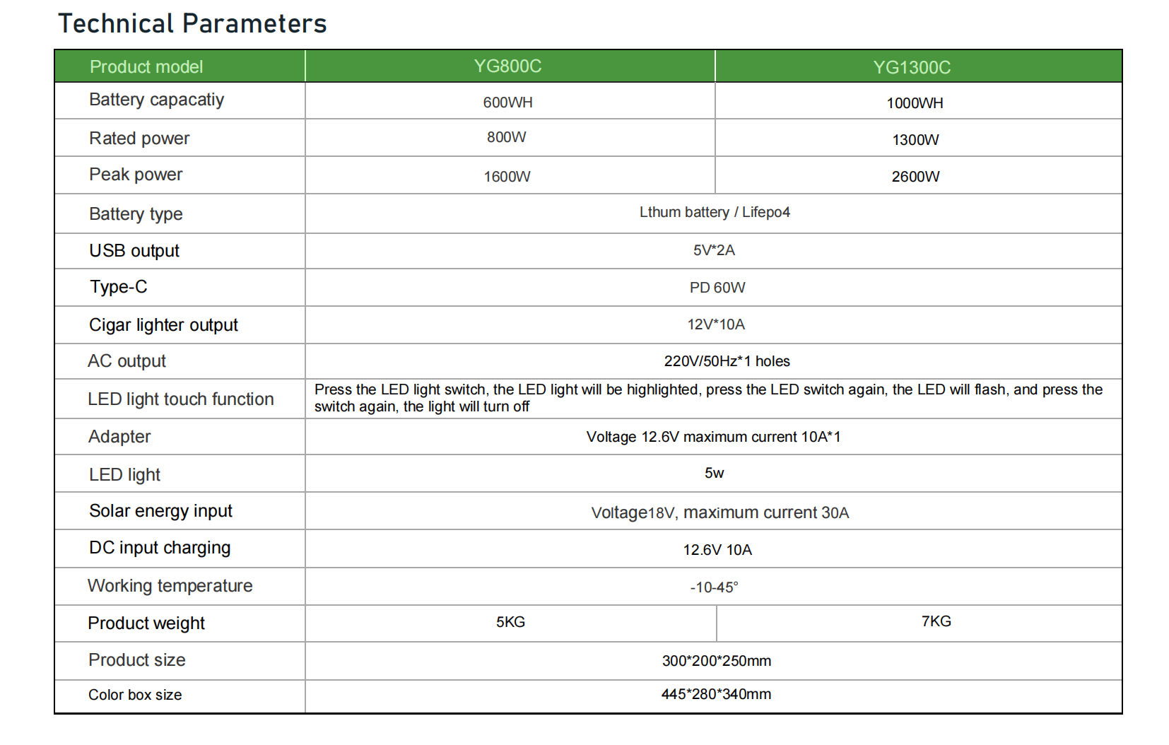 - Output: AC 110V / 220V + DC 12V + USB 5V+Type-C